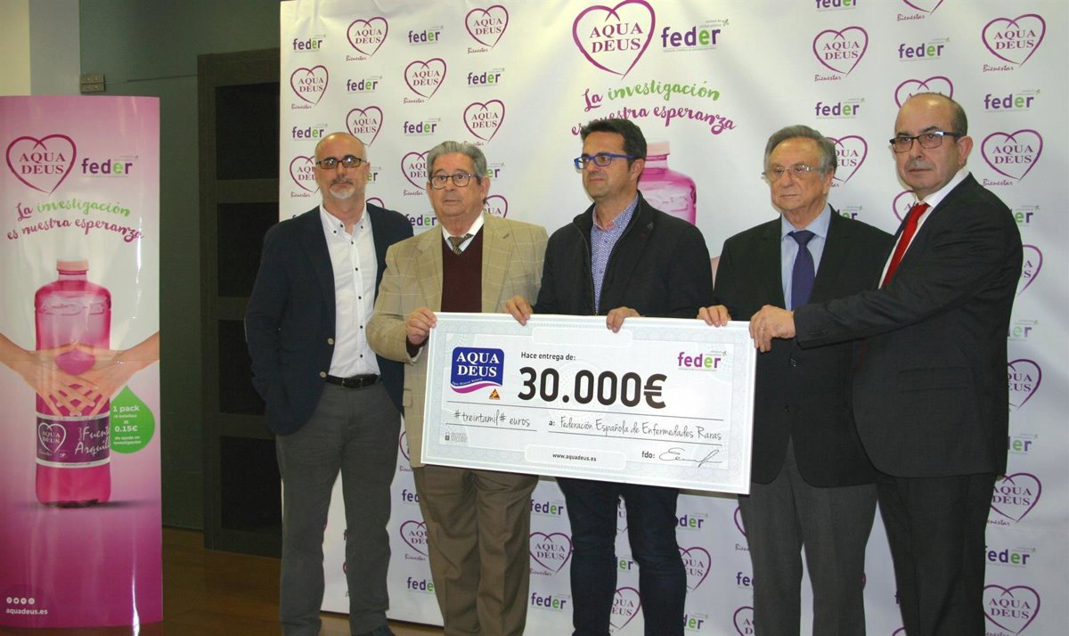 La empresa de agua mineral Aquadeus ha donado 30.000 euros a la Federación Española de Enfermedades Raras (Feder) destinados a financiar proyectos de investigación para las más de tres millones de personas con enfermedades poco frecuentes que se estima existen en España y unos 36 millones en Europa. Se estima que en España hay 7.000 enfermedades raras.