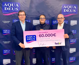 Aquadeus, empresa de agua mineral natural integrada en Grupo Fuertes, ha donado 60.000 euros a la Federación Española de Enfermedades Raras (FEDER) para ayudar al fomento de la investigación en la búsqueda de diagnóstico y posibles tratamientos. En España se estima que existen más de tres millones de personas afectadas por algún tipo de dolencia poco frecuente.