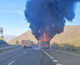 Servicios Sanitarios de Emergencia han intervenido para apagar un autobús que se encontraba ardiendo cuando circulaba por la carretera RM-11, de Águilas en dirección Lorca, en el término municipal de Lorca.