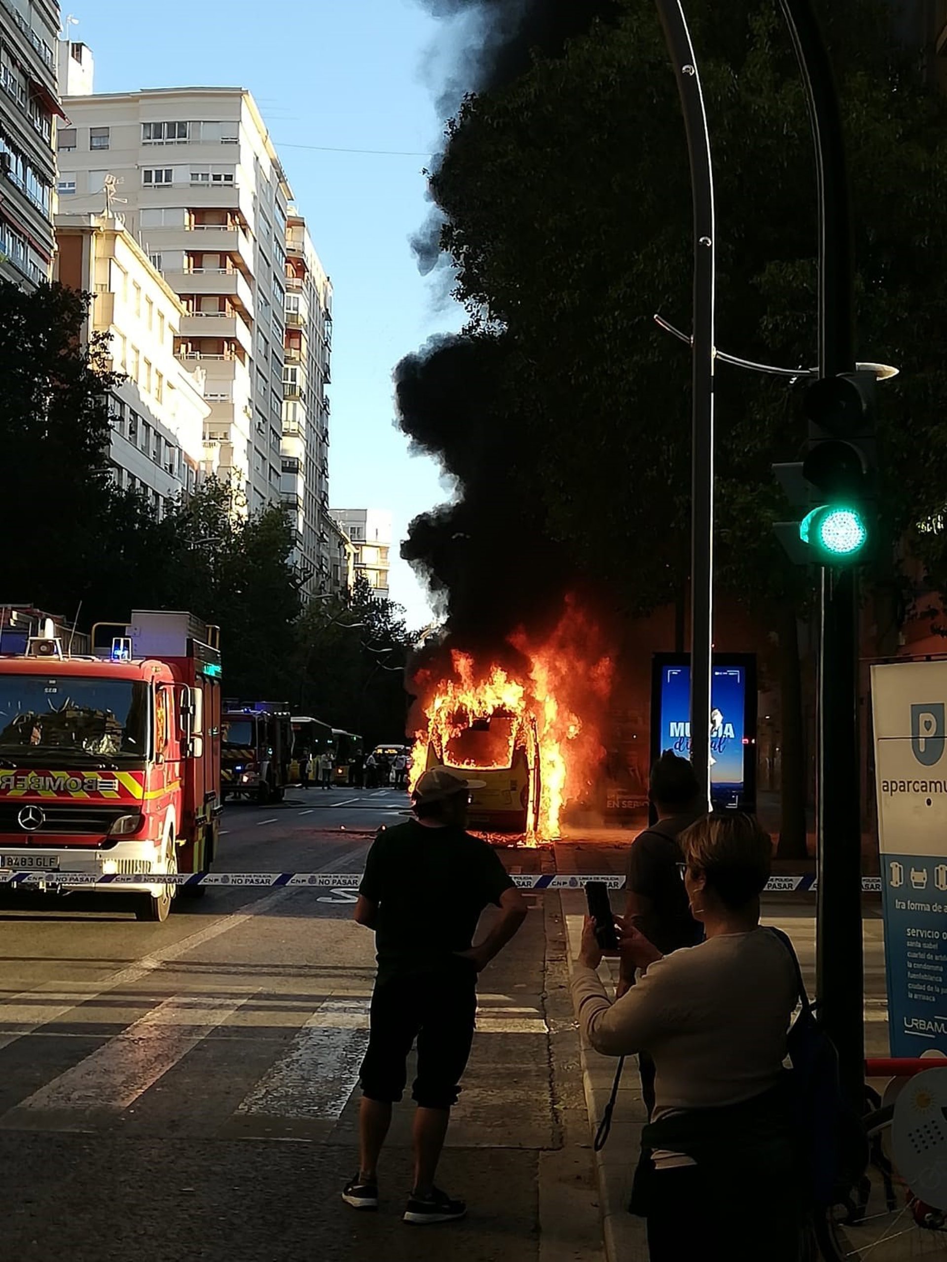 Hasta el lugar se han desplazado efectivos del Servicio de Extinción de Incendios y Salvamento (SEIS) de Murcia, que han sofocado el fuego, así como de Policía Local y de Policía Nacional, y una ambulancia del 061.