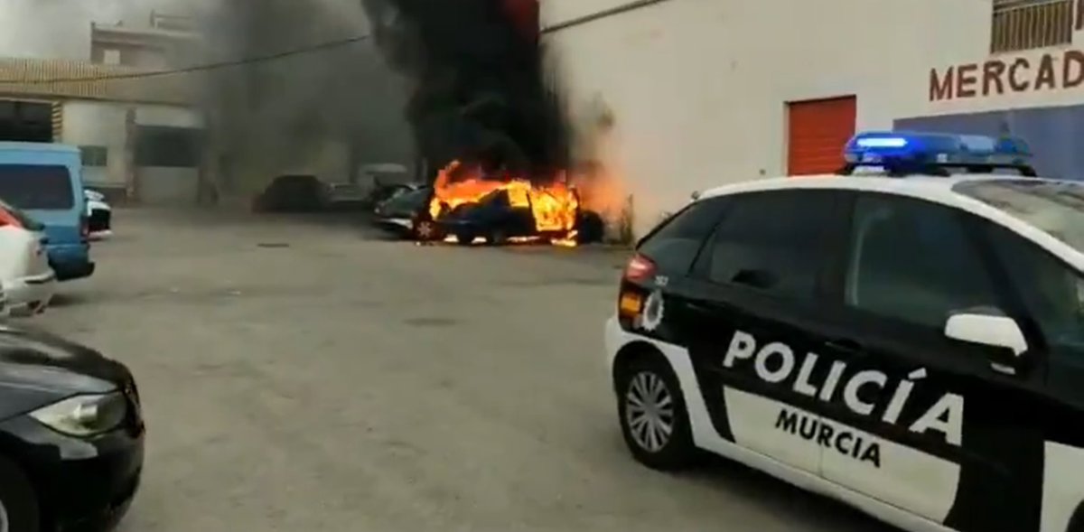 Arden tres vehículos estacionados junto a un supermercado en la pedanía murciana de El Palmar - POLICÍA LOCAL DE MURCIA
