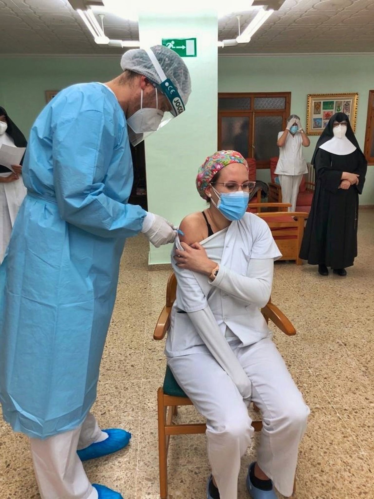 Una sanitaria vacuna a empleada de una residencia de Caravaca de la Cruz (Murcia) - AYUNTAMIENTO DE CARAVACA DE LA CRUZ