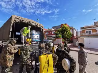 Estos trabajos se suman a los que la Armada viene realizando en puntos estratégicos de la comarca de Cartagena, como estaciones de tren, hospitales, centros ocupacionales y residencias de mayores, en el marco de la 'Operación Balmis', por la que las Fuerzas Armadas aportan sus capacidades contra la propagación del coronavirus.