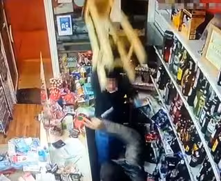 Momento en el que uno de los delincuentes tira un taburete al responsable de uno de los establecimientos en los que robó - GUARDIA CIVIL