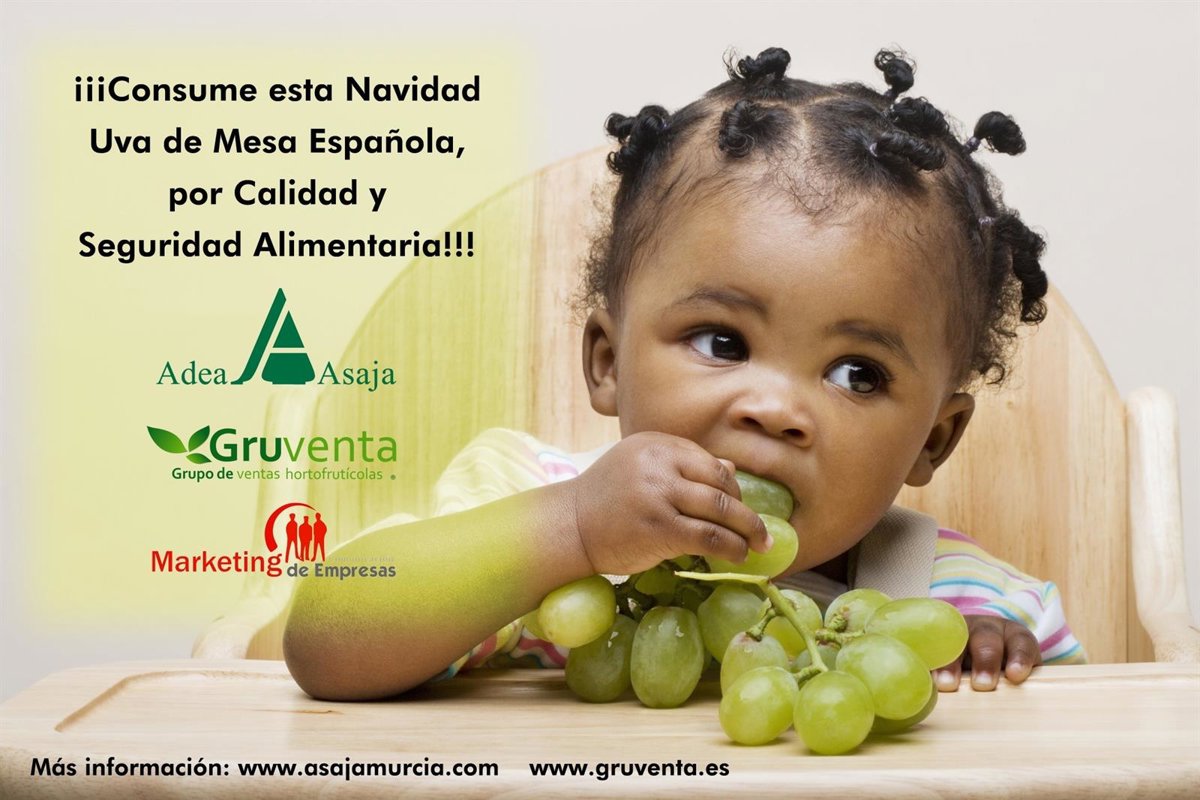La organización profesional agraria Asaja-Murcia ha lanzado una campaña de promoción de uva de mesa origen España, que pretende llamar la atención del consumidor, a través de carteles y de presencia activa en las redes sociales de esta asociación. En esta campaña colabora también la firma productora-exportadora de frutas y hortalizas Gruventa.