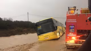 La incidencia mas destacable es el rescate realizado por bomberos del Ayuntamiento de Cartagena de los 70 ocupantes de un autobús escolar que se encontraba atrapado por el agua en el camino del Sifón en Santa Ana (Cartagena).