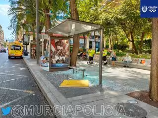 Un autobús choca contra una marquesina de la Plaza Santa Isabel, en Murcia, y provoca dos heridas leves - POLICÍA LOCAL DE MURCIA