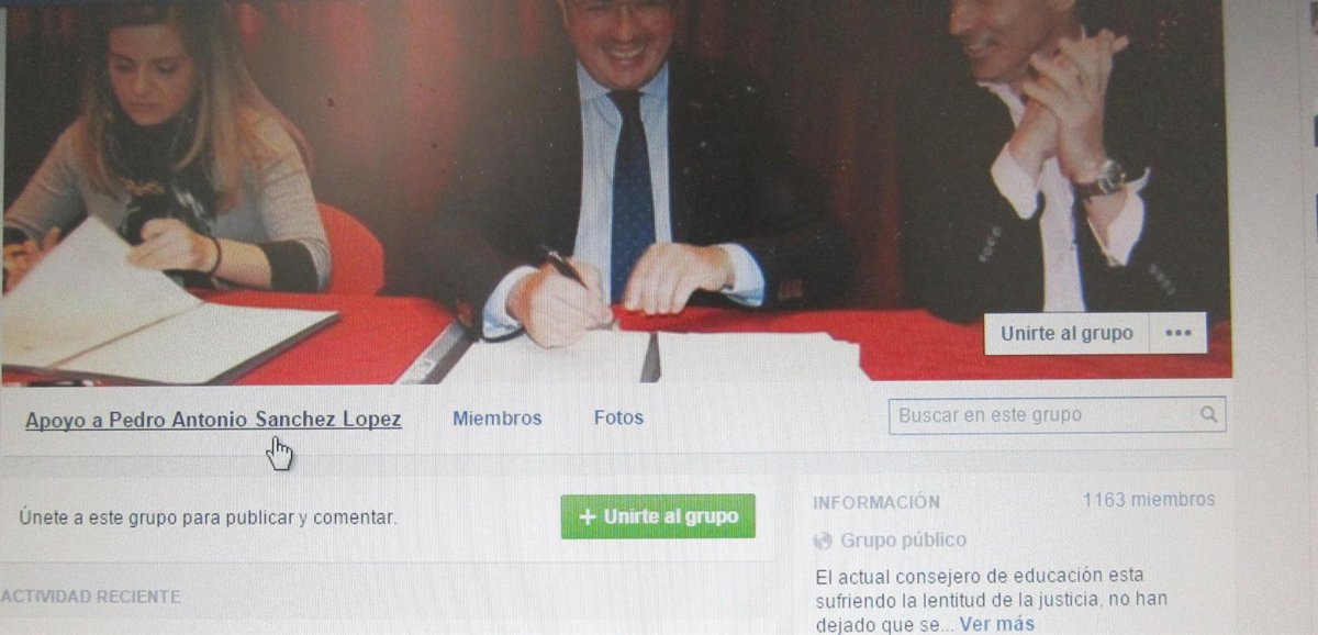 Prueba de este apoyo es la recién creada plataforma en Facebook de Apoyo a Pedro Antonio Sánchez, que ha conseguido en 24 horas que la sigan más de 1.200 personas.