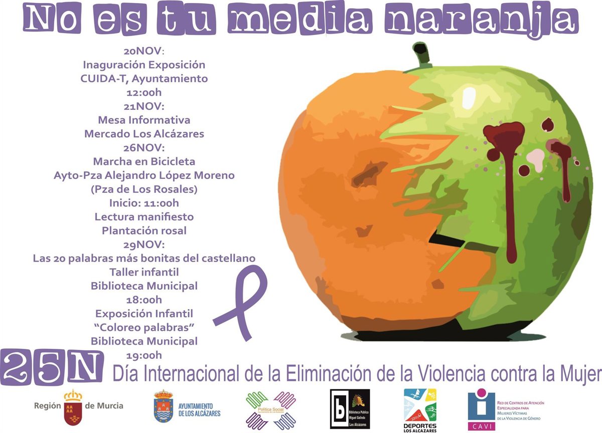 El programa de actividades, organizado bajo el lema 'No es tu media naranja', comenzará el lunes, 20 de noviembre, con la inauguración de la exposición 'CUIDA-T' en el Ayuntamiento a las 12.00 horas.