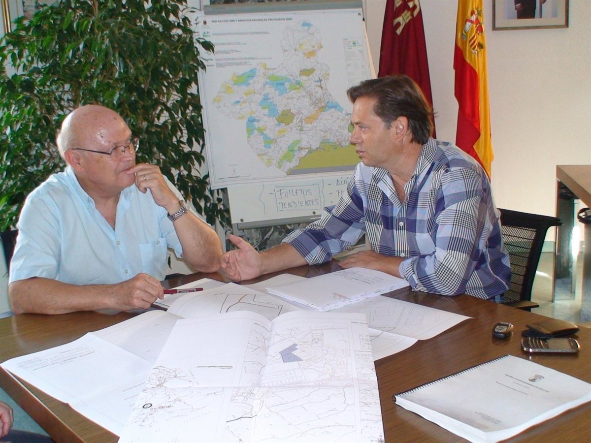 El alcalde de Bullas, Pedro Chico, mantuvo ayer una reunión con el director general de Medio Ambiente, Amador López, para presentarle el proyecto 'Parque Urbano Los Cantos'.