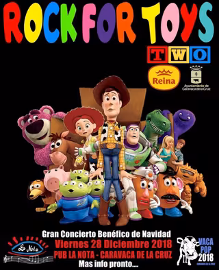 La Asociación Cultural 'Vaca Pop' se suma por segundo año a la campaña con el concierto benéfico 'Rock for toys', que tendrá lugar el 28 de diciembre en Pub 'La Nota', con la participación del guitarrista y cantante caravaqueño Austin Slack, acompañado por numerosos músicos de Caravaca de a Cruz y de otros puntos de la Región. Las entradas tienen un precio de 5 euros y, partir de la semana que viene, estarán a la venta en librería Rosendo y en Pub 'La Nota'.