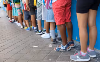 Archivo - Varios niños hacen fila con sus mochilas - MARTA FERNÁNDEZ / EUROPA PRESS - Archivo