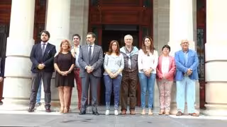 En rechazo, y como condena a estos deleznables sucesos, varios miembros de la Corporación y empleados municipales se han concentrado este lunes a las puertas del Palacio Consistorial para guardar un minuto de silencio, sumándose así a la convocatoria de la Federación Española de Municipios y Provincias (FEMP) en repulsa de los últimos crímenes.
