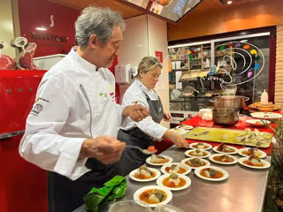 El miércoles fue el turno de la gastronomía árabe con Alejandro Medina (Alkimia) y Antonio Velázquez (Portillo); quienes elaboraron tres tapas inspiradas en esta cultura. Y, continuaba la gastronomía judía donde serán protagonistas las recetas de Rodi Fernández (Taulla) y Juan Azorín (Estirpe).