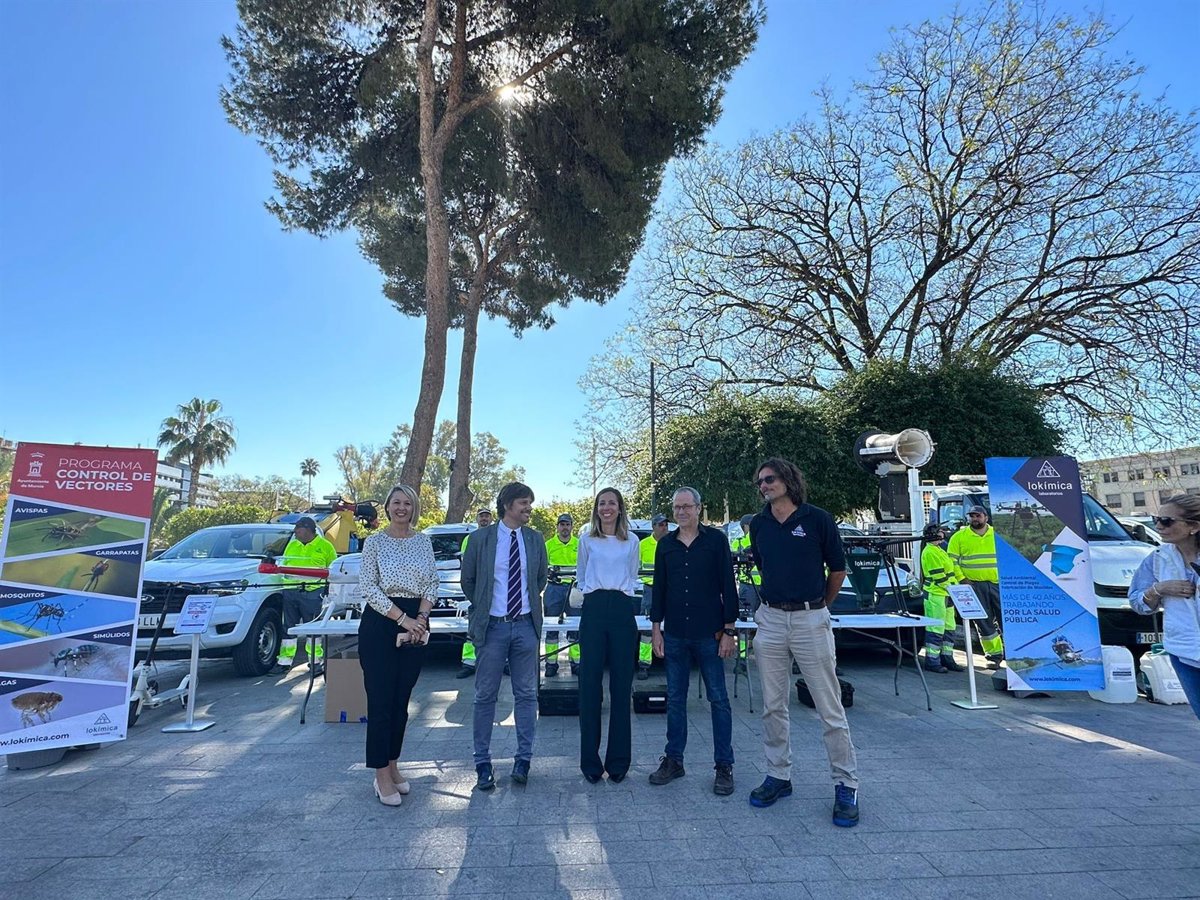 La concejala de Salud y Transformación Digital del Ayuntamiento de Murcia, Esther Nevado, acompañada de técnicos de Salud y de representantes de la empresa Lokimica, ha presentado esta mañana la campaña específica contra los mosquitos por la llegada de las altas temperaturas.