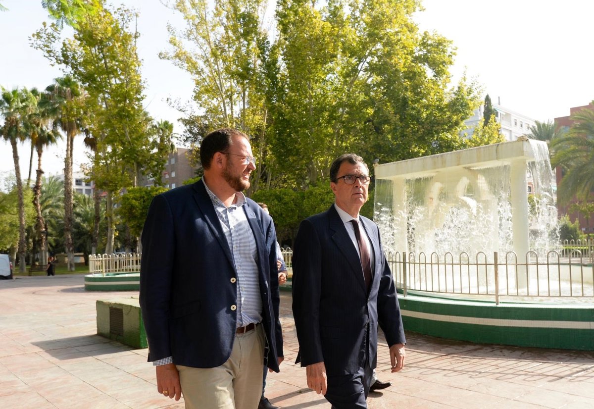 El alcalde de Murcia, José Ballesta, acompañado del concejal de Desarrollo Urbano y Modernización de la Administración, José Guillén, ha visitado este jueves el jardín del Salitre, donde ha presentado el 'Objetivo Alberca 2023', por el que el Consistorio va a destinar más