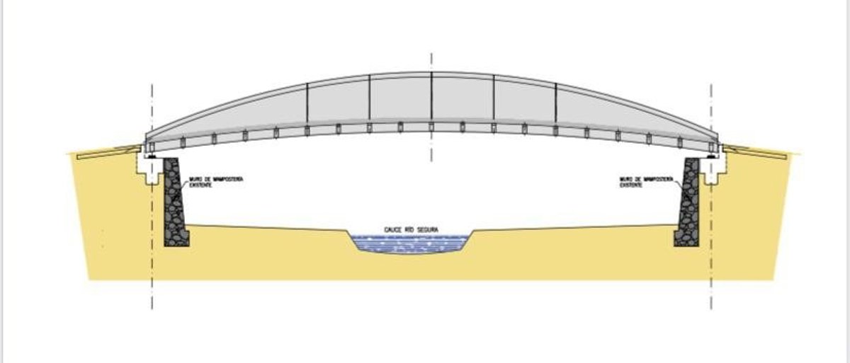 El proyecto, que ya ha sido dotado presupuestariamente, incluye la creación de una estructura con una longitud total de 44 metros entre ejes de apoyos de estribos con una calzada central de dos carriles de 3.50 metros y vías peatonales de 1.80 metros".