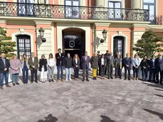 Miembros de la Corporación Municipal del Ayuntamiento de Murcia encabezados por el alcalde, José Ballesta, han guardado un minuto de silencio este jueves a las puertas del Consistorio como muestra de repulsa por el último caso relacionado con violencia machista ocurrido este miércoles en la pedanía de Torreagüera, donde una mujer fue asesinada al defender a su hija del ataque de su expareja.