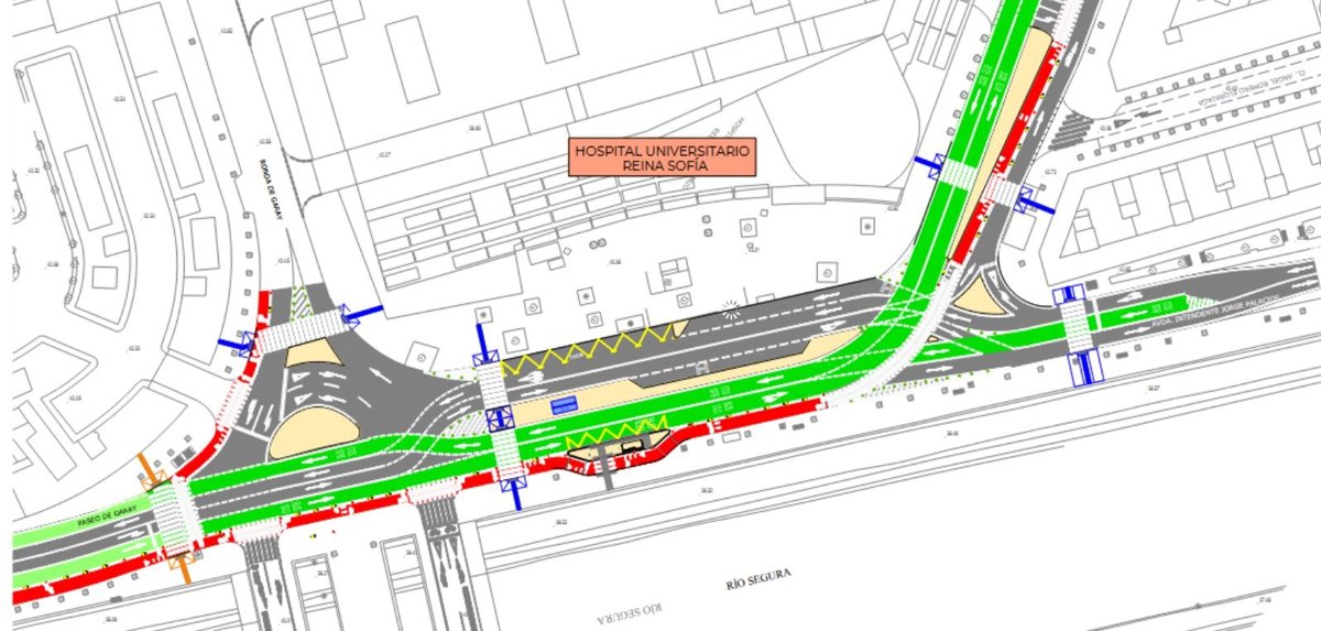 Igualmente, las obras continuarán en avenida de El Palmar N301, carretera de Alcantarilla, avenida General Primo de Rivera, avenida Primero de Mayo de El Palmar, avenida Pío Baroja y Ronda Norte.