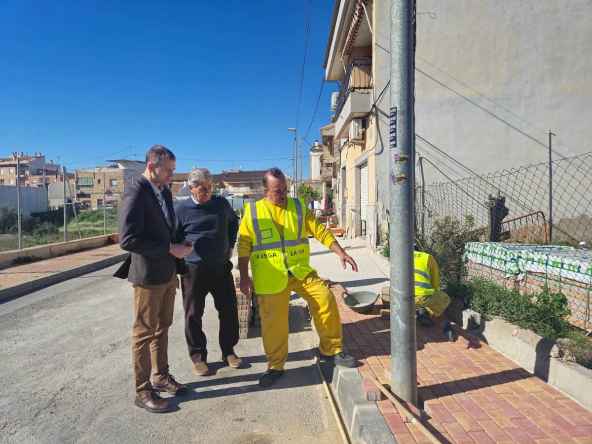 El concejal de Pedanías y Vertebración Territorial, Marco Antonio Fernández, junto con el presidente de la Junta Municipal de San Ginés, Juan Hernández, han visitado este jueves las actuaciones, que permitirán reponer 1.050 metros cuadrados de pavimento asfáltico que abarcan los 200 metros lineales de mide la calle.