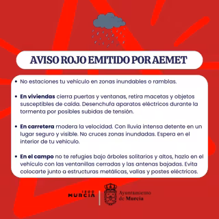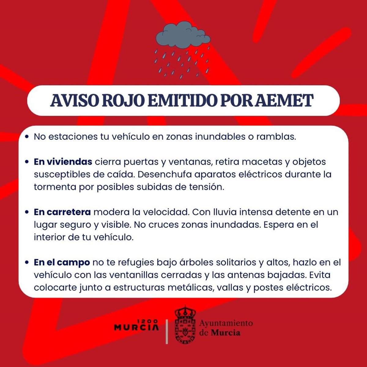 Aviso rojo por lluvias - AYUNTAMIENTO DE MURCIA