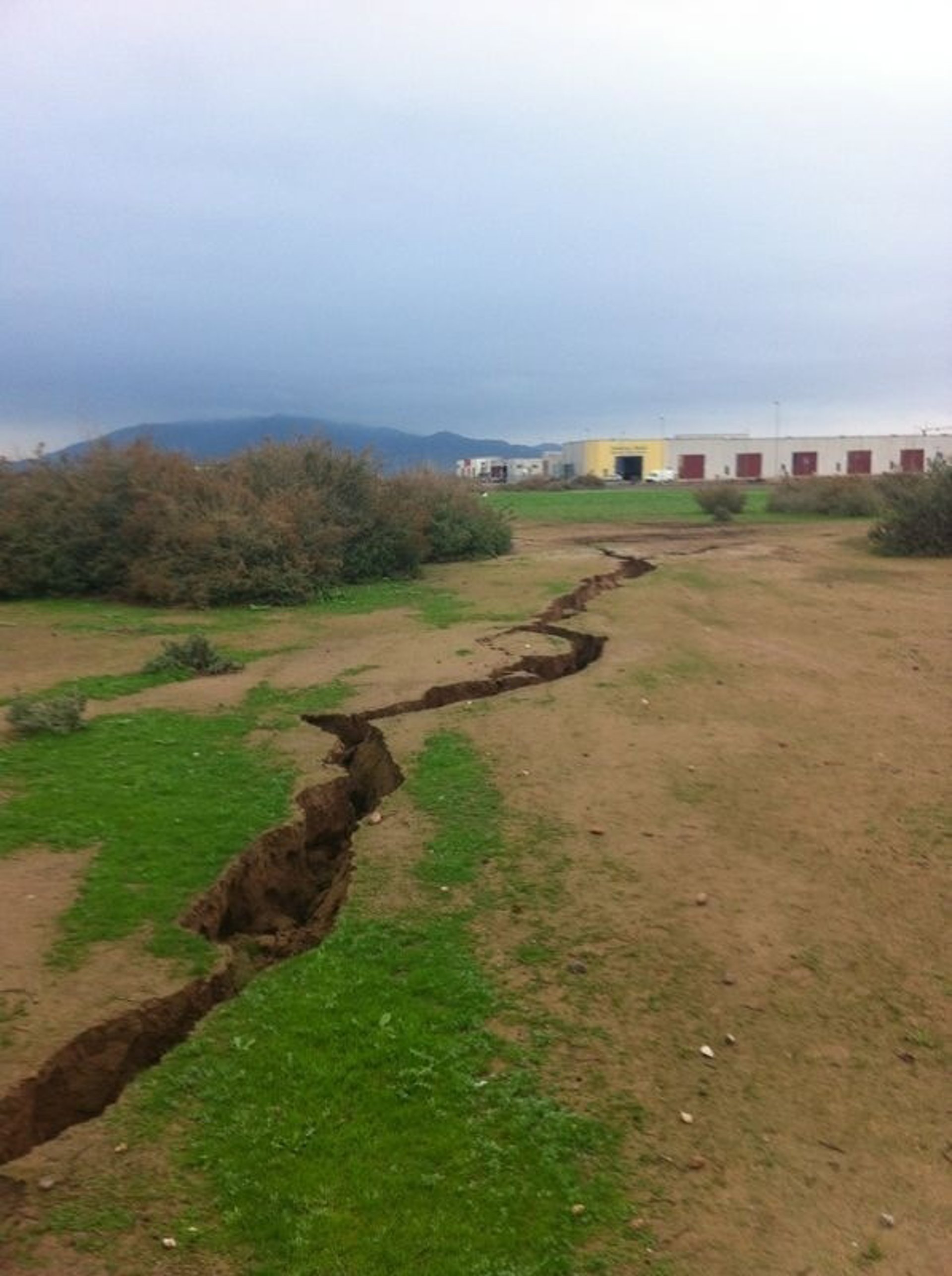 La Concejalía de Emergencias del Ayuntamiento de Totana ha solicitado este viernes la "urgente" presencia de técnicos del Instituto Geológico y Minero de la Unidad de Murcia del Ministerio de Economía y Competitividad para evaluar los motivos de la aparición de una grieta terrestre surgida tras las últimas lluvias torrenciales, en una parcela del polígono industrial 'El Saladar'.