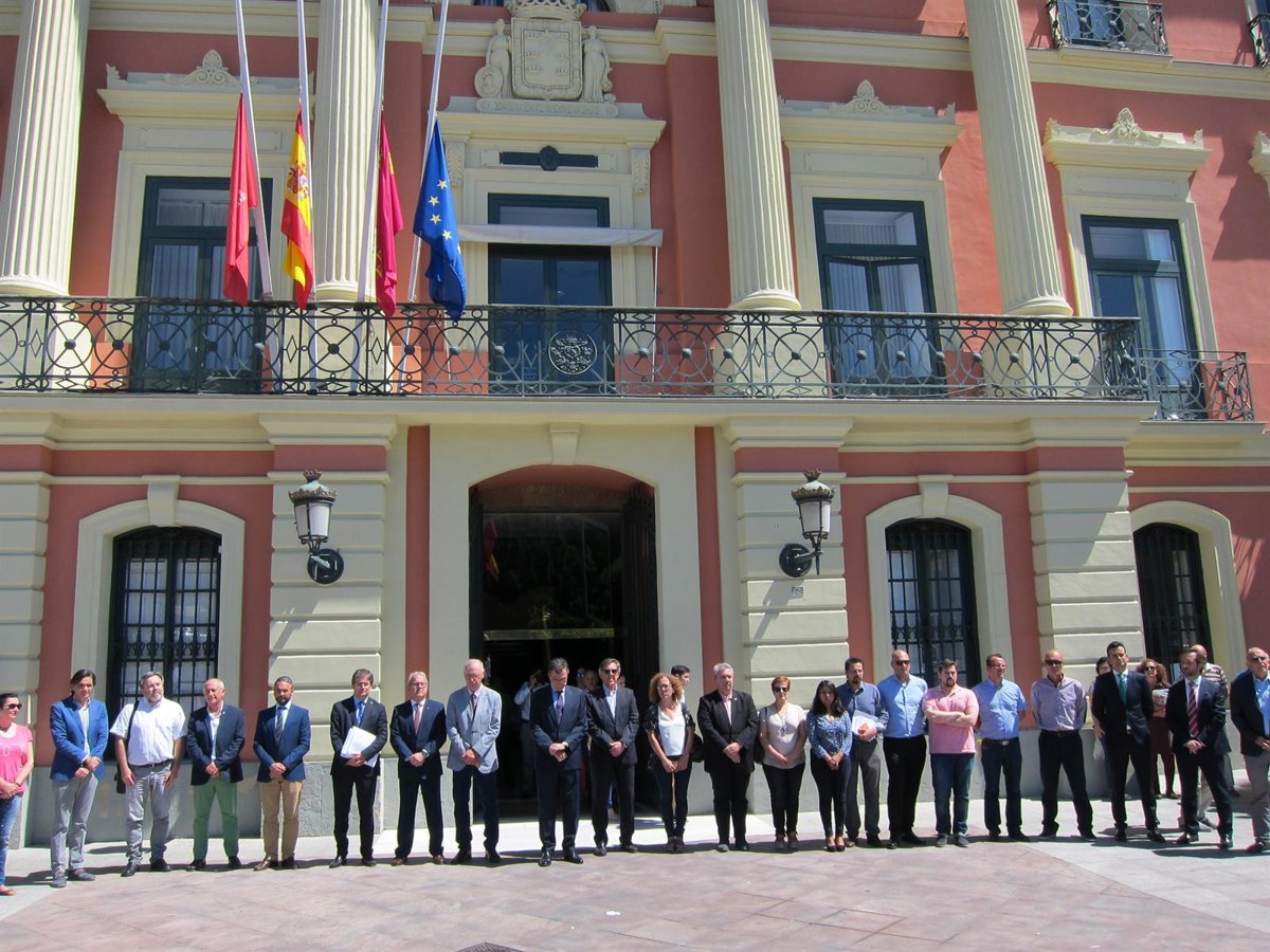 El alcalde de Murcia, José Ballesta, y miembros de toda la Corporación municipal han guardado este lunes, a las 12.00 horas, un minuto de silencio en señal de solidaridad por los heridos y fallecidos en el atentado de Londres.