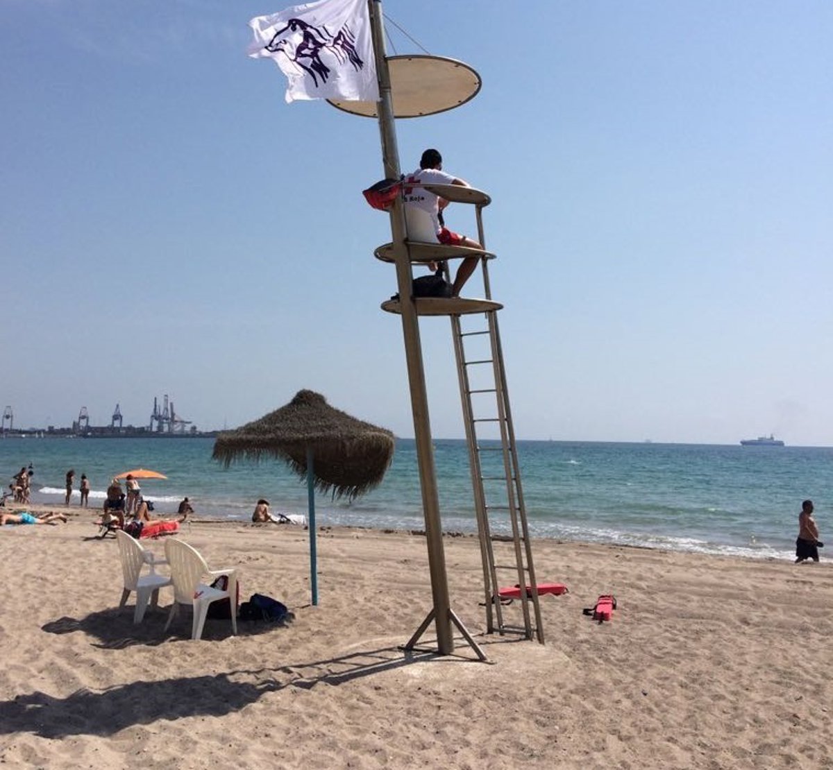 Los socorristas comunican el cambio de bandera, izando bandera amarilla por picaduras de medusa en la zona.