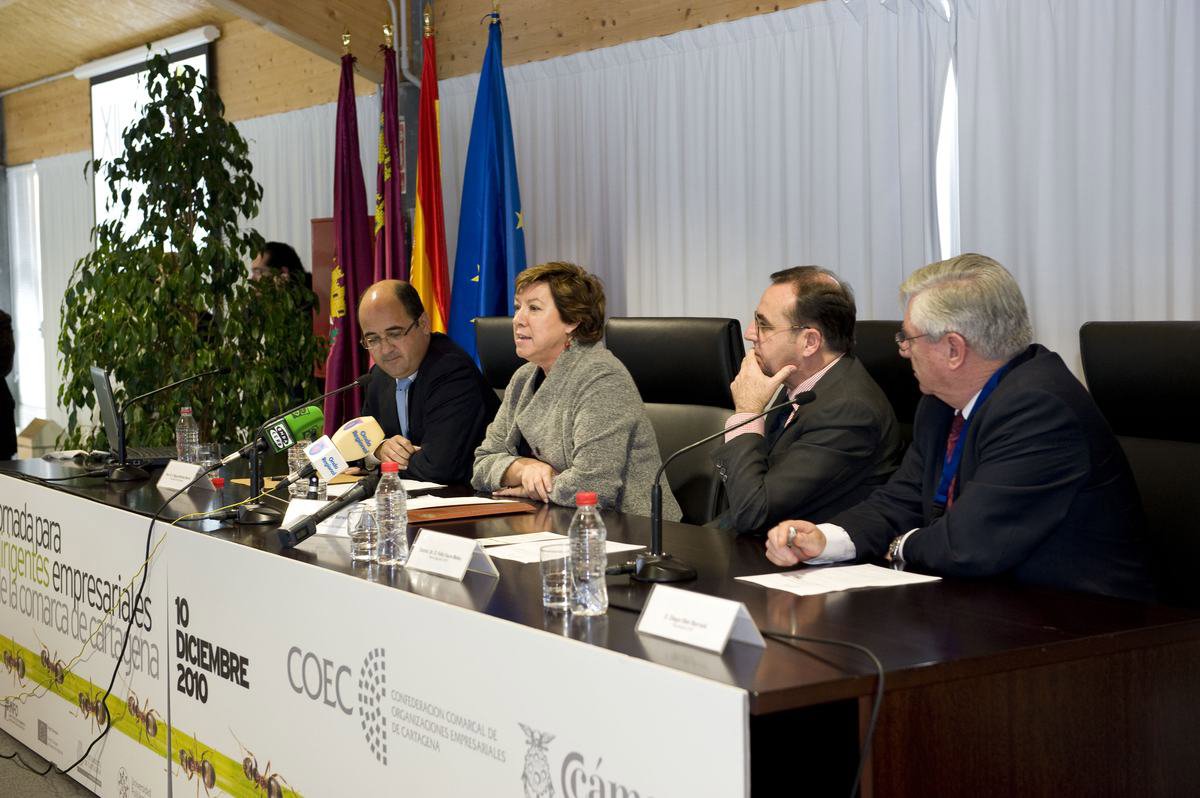 La alcaldesa de Cartagena, Pilar Barreiro, ha sido la encargada de inaugurar este viernes la XII Jornada de Dirigentes Empresariales de la Comarca de Cartagena, organizada conjuntamente por la Confederación de Organizaciones Empresariales de Cartagena (COEC) y la Cámara de Comercio.