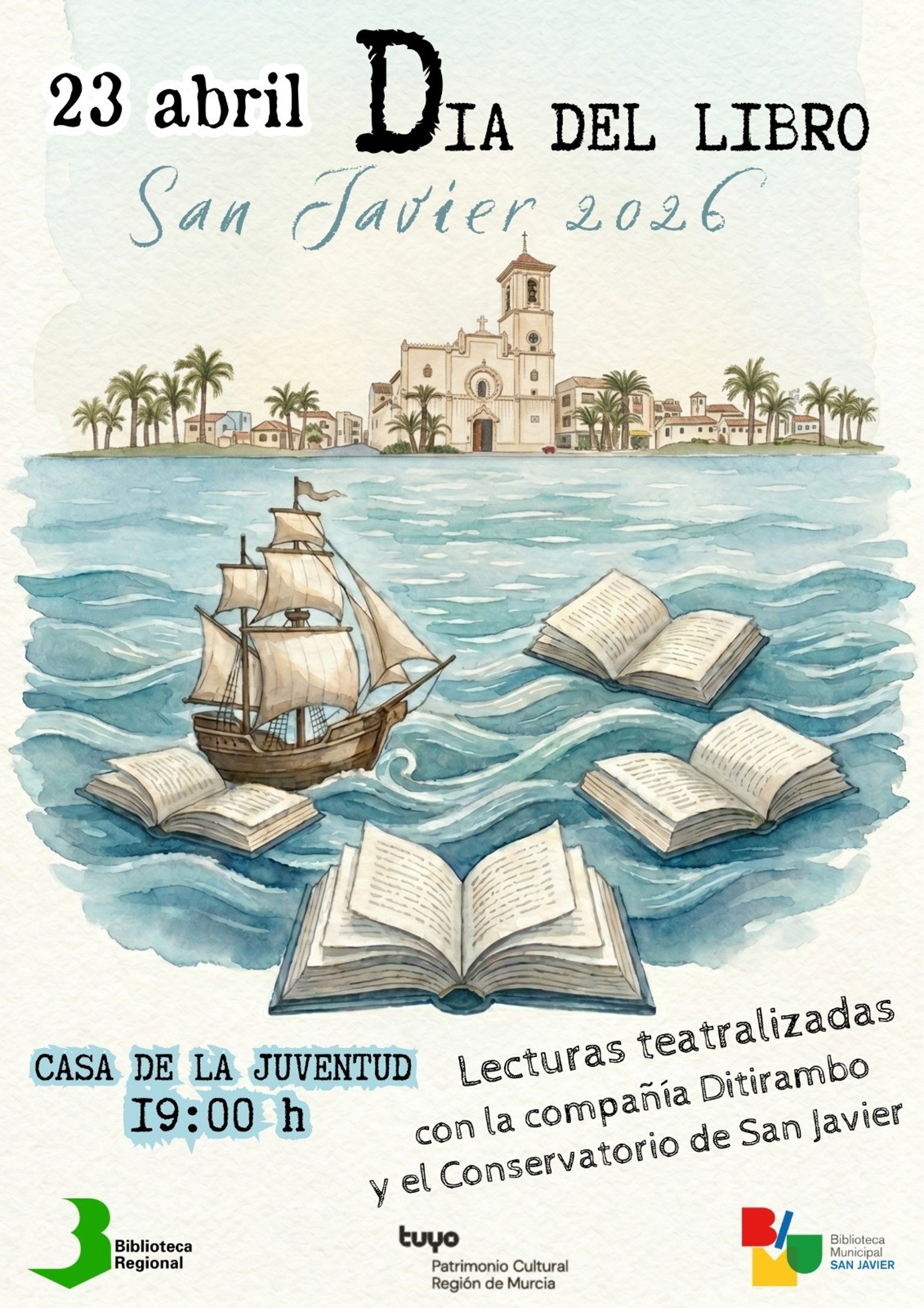 La Biblioteca Regional de Murcia (BRMU), organismo dependiente de la Consejería de Turismo, Cultura, Juventud y Deportes, ha organizado una batería de actividades en torno al Día del Libro. "Se trata de la fecha más importante en el ámbito literario, que este año, en el marco de nuestro plan de descentralización cultural, conmemoramos en San Javier, un municipio bien conocido por su afición al teatro y la música", manifestó el director general de Patrimonio Cultural, Patricio Sánchez.