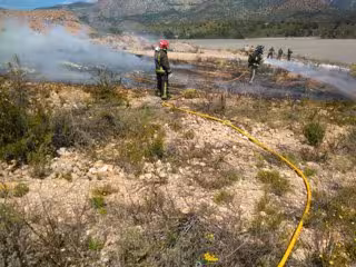 El primero de los incendios tenía lugar sobre las 12.21 horas, cuando el '1-1-2' ha recibido el aviso del agente medioambiental de la zona, quien informó de que una quema de restos agrícolas se había descontrolado y se propagaba hacia la rambla.