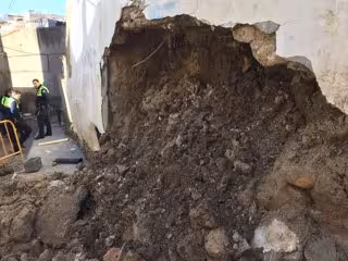 Al lugar se ha desplazado una dotación del CEIS con un sargento, un cabo y cuatro bomberos a petición de técnicos municipales. Han apuntalado una pared de seis metros de largo.