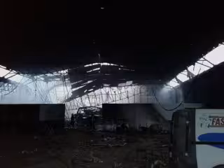 Las llamas han afectado principalmente a dos cerchas de acero y al techo de la nave, que se ha desplomado en parte. En las tareas de extinción han participado dos camiones autobombas, un coche escala y un camión nodriza.
