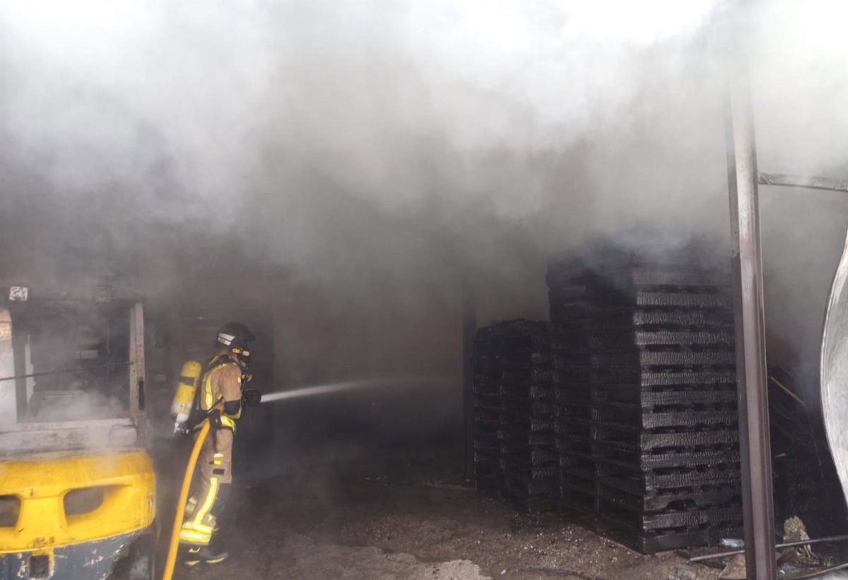 Efectivos del Consorcio de Extinción de Incendios y Salvamento (CEIS) de la Región de Murcia han sofocado el incendio declarado en una fábrica de palés en Caravaca de la Cruz, según informaron fuentes del Centro de Coordinación de Emergencias.