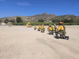 El Centro de Coordinación de Emergencias de la Región de Murcia ha recibido el aviso a las 16.14 horas. Hasta el lugar del siniestro se han desplazado, 3 camiones de los bomberos del Servicio de Extinción de Incendios y Salvamento del Ayuntamiento de Murcia, con un total de 12 efectivos, agentes medioambientales y un helicóptero de la Dirección General de Seguridad Ciudadana y Emergencias, quienes colaboran en las tareas de extinción.