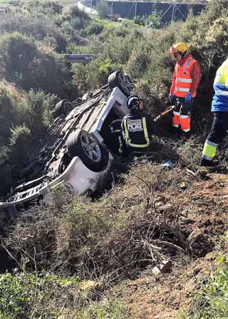 Bomberos del Consorcio de Extinción de Incendios y Salvamento de la Región de Murcia (CEIS) han rescatado a tres personas del interior de un turismo que se ha salido de la vía por la que circulaba y ha volcado, en el término municipal de Mazarrón.