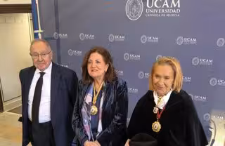 El presidente de la Cámara de Comercio de España, José Luis Bonet, acompañado por la presidenta de la UCAM, María Dolores García (en el centro) y de la rectora de la UCAM, Josefina García (a la derecha) - EUROPA PRESS