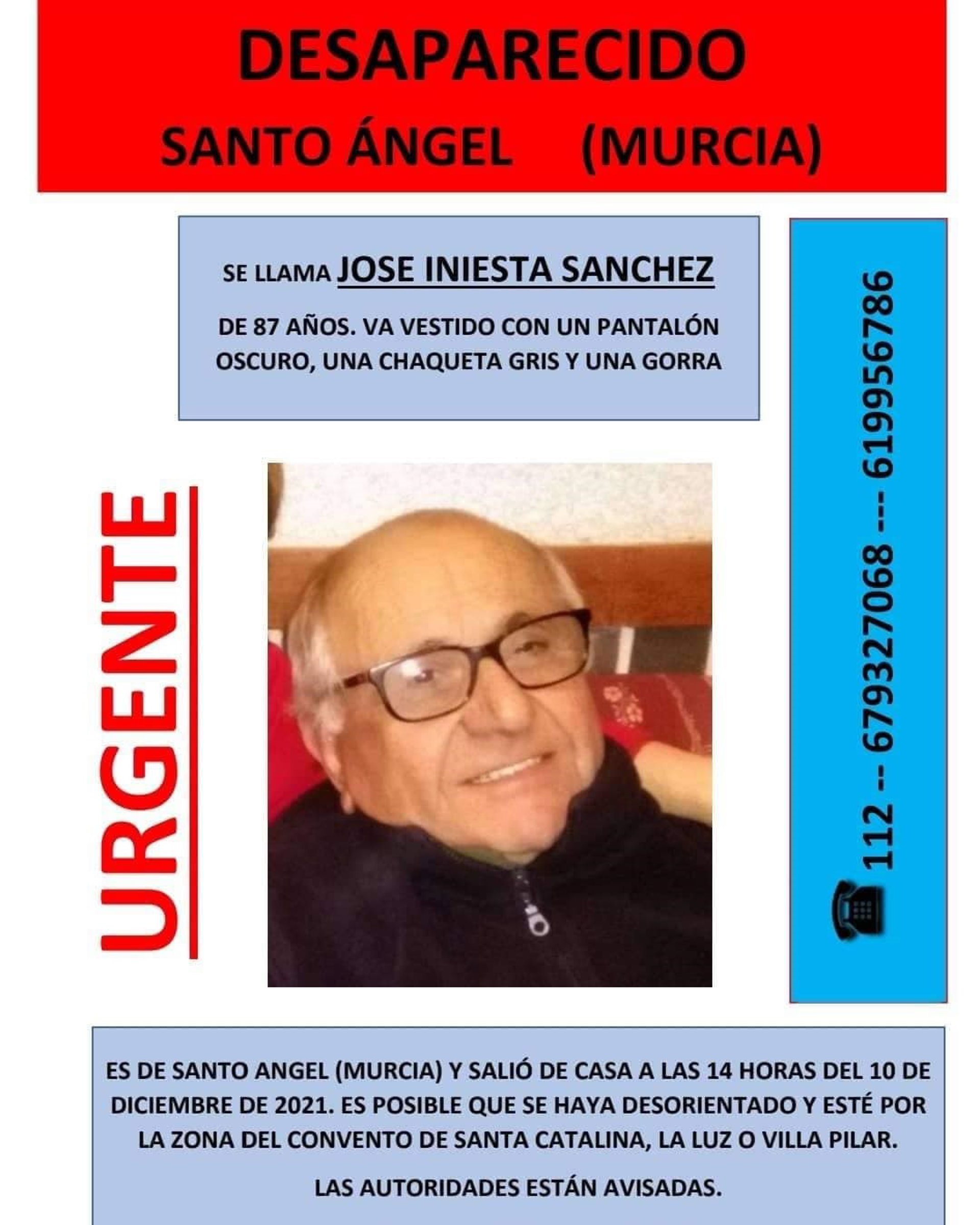 Un dispositivo de búsqueda trata de localizar por la zona de El Valle Perdido, en el municipio de Murcia, a un mayor de 87 años, vecino de la pedanía de Santo Ángel, que se encuentra en paradero desconocido desde este viernes.
