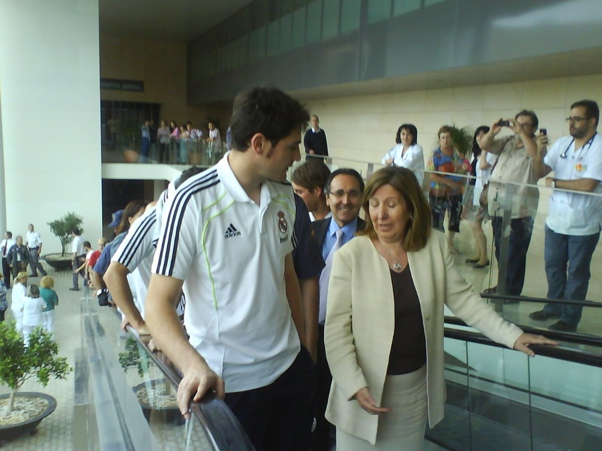 El vicepresidente deportivo del Real Madrid, Emilio Butrageño, acompañado por Iker Casillas, Sergio Ramos y Cristiano Ronaldo, se han desplazado hasta el Hospital Materno Infantil de la Arrixaca para visitar a los pacientes que se encuentran ingresados como consecuencia del terremoto que asoló Lorca el pasado miércoles, donde han sido recibidos por la consejera de Sanidad, María Ángeles Palacios.