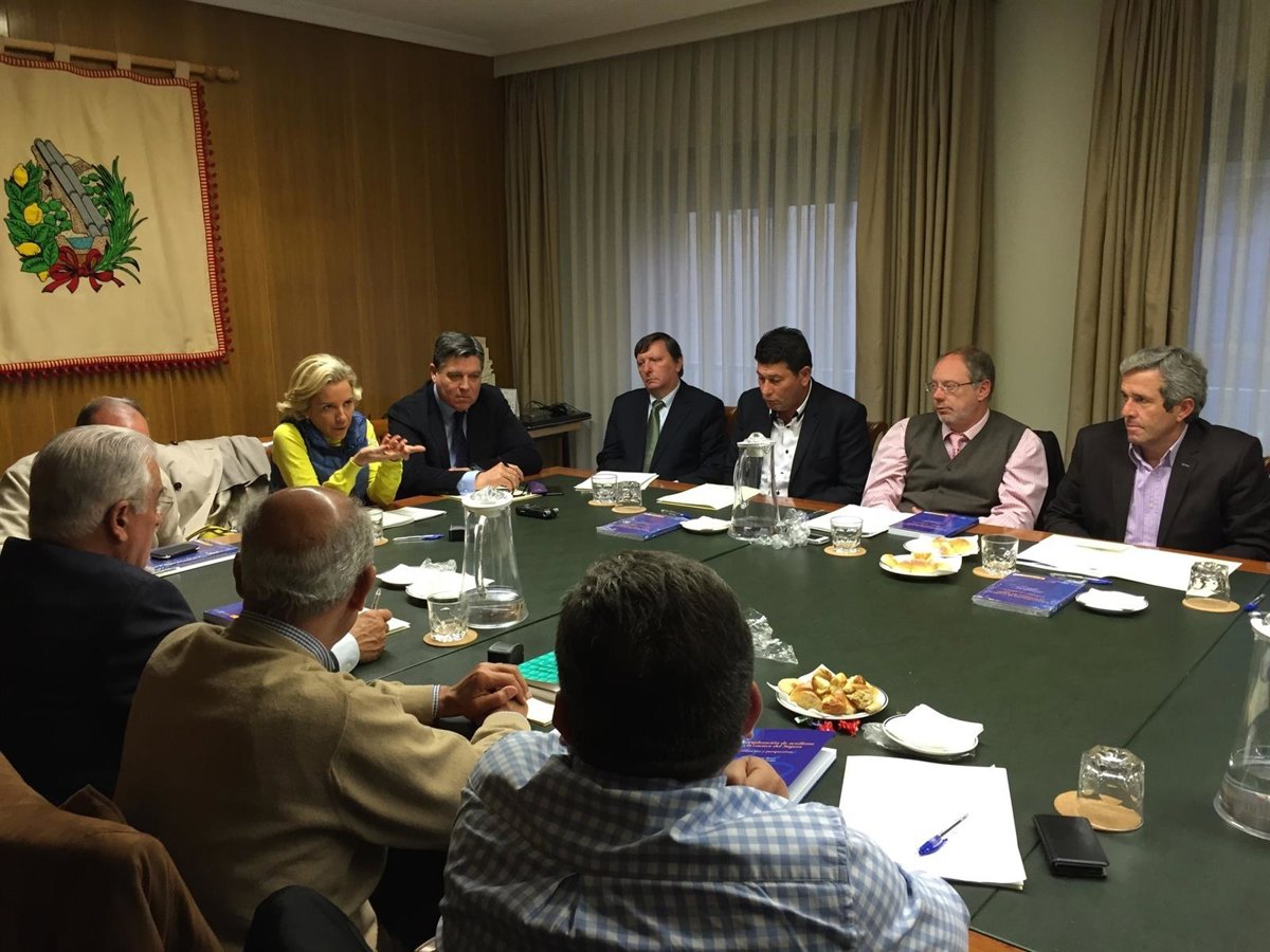 La titular de Agricultura y Agua ha recibido por parte de los regantes, tras la reunión, la Insignia de Oro del Sindicato, como muestra de agradecimiento por su interés y predisposición a escuchar las propuestas de los regantes para avanzar en un tema que calificó de "prioritario para la Región de Murcia".