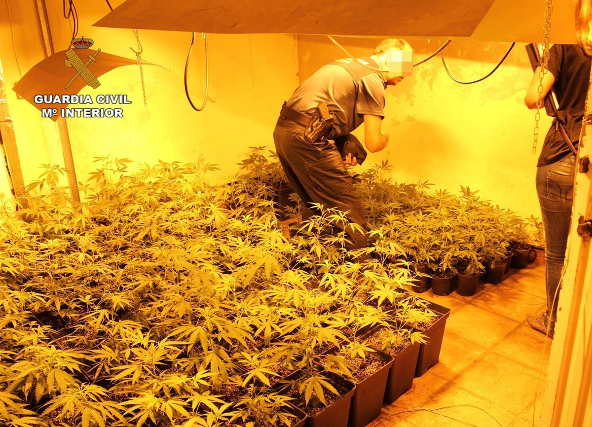 En el inmueble utilizado como núcleo de la organización criminal, los agentes han desmantelado un invernadero clandestino con 1.150 plantas de marihuana en plena producción, 43 recipientes con cogollos de esta sustancia preparados para su distribución, dos kilos de marihuana en fase de secado y cuatro de hachís dispuesto para su manipulación y distribución.