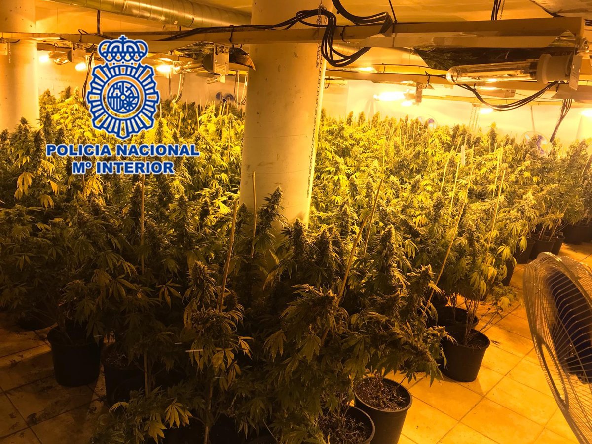En la inspección desarrollada en el domicilio de Ceutí se localizó un habitáculo, oculto en el sótano, en cuyo interior se halló una plantación de marihuana con unas 420 plantas.