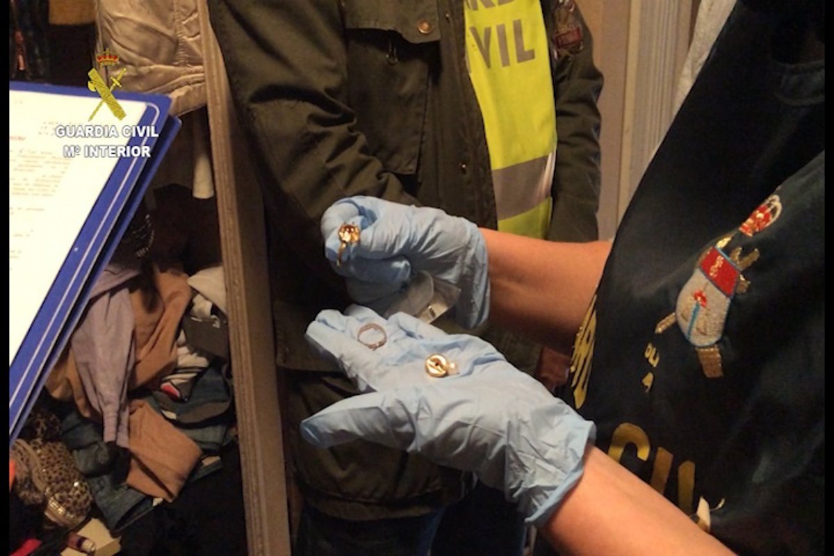 Ante la gravedad de los hechos, y con la preceptiva autorización judicial pertinente, se procedió a la entrada y registro de sus cuatro domicilios ubicados en Madrid y Burgos, así como a inspeccionar el establecimiento de 'Compro Oro' donde le daban salida a los efectos robados.