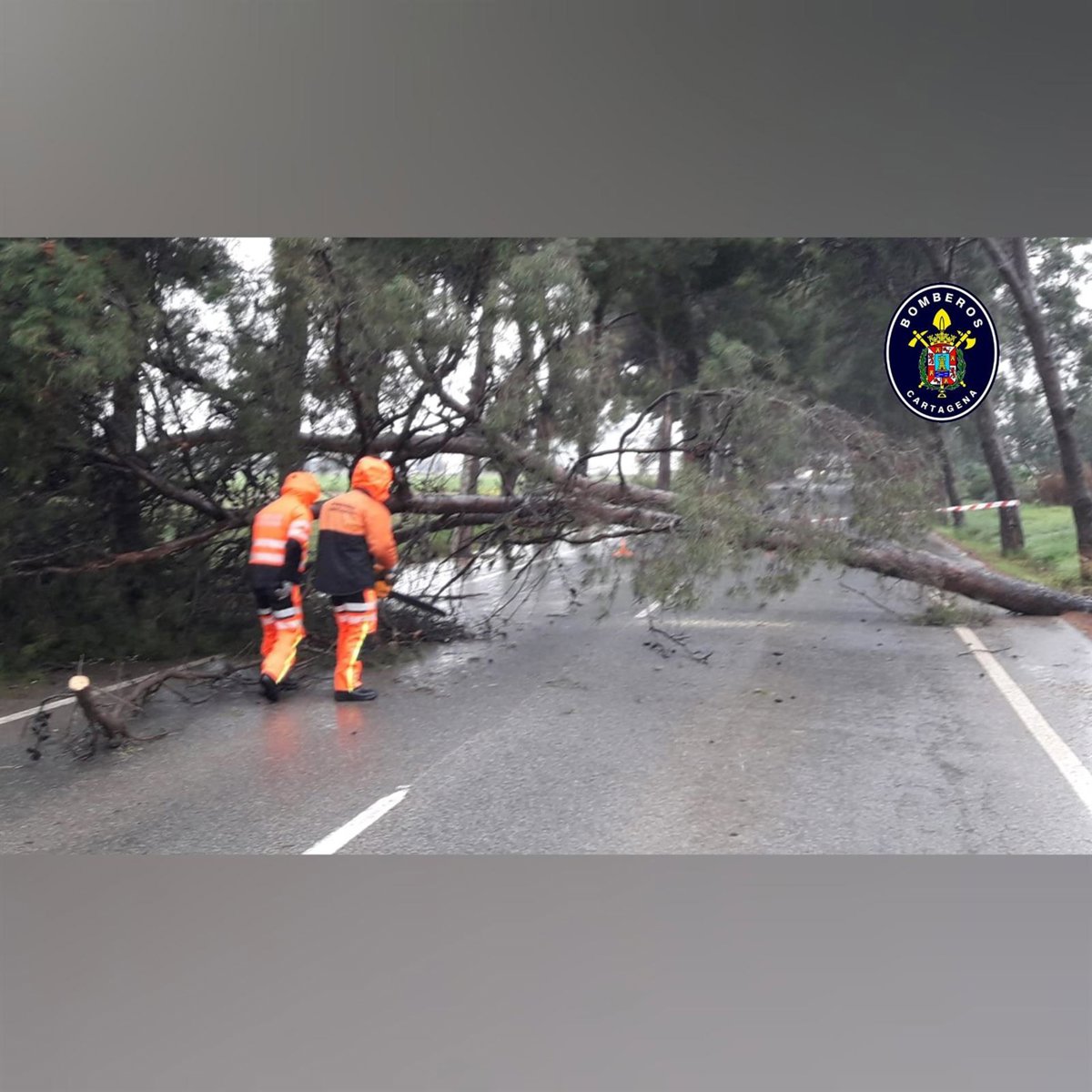 La caída de un árbol provoca el corte del tráfico en la N-301 en Cartagena - BOMBEROS DE CARTAGENA
