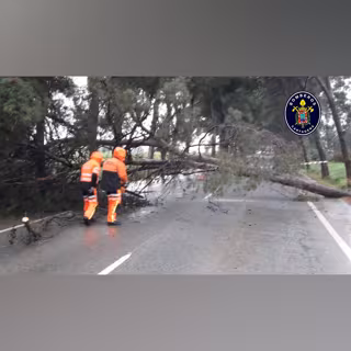 Bomberos de la ciudad portuaria han acudido al lugar de los hechos para retirar el árbol de la carretera.