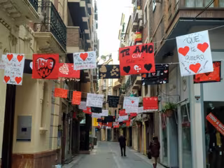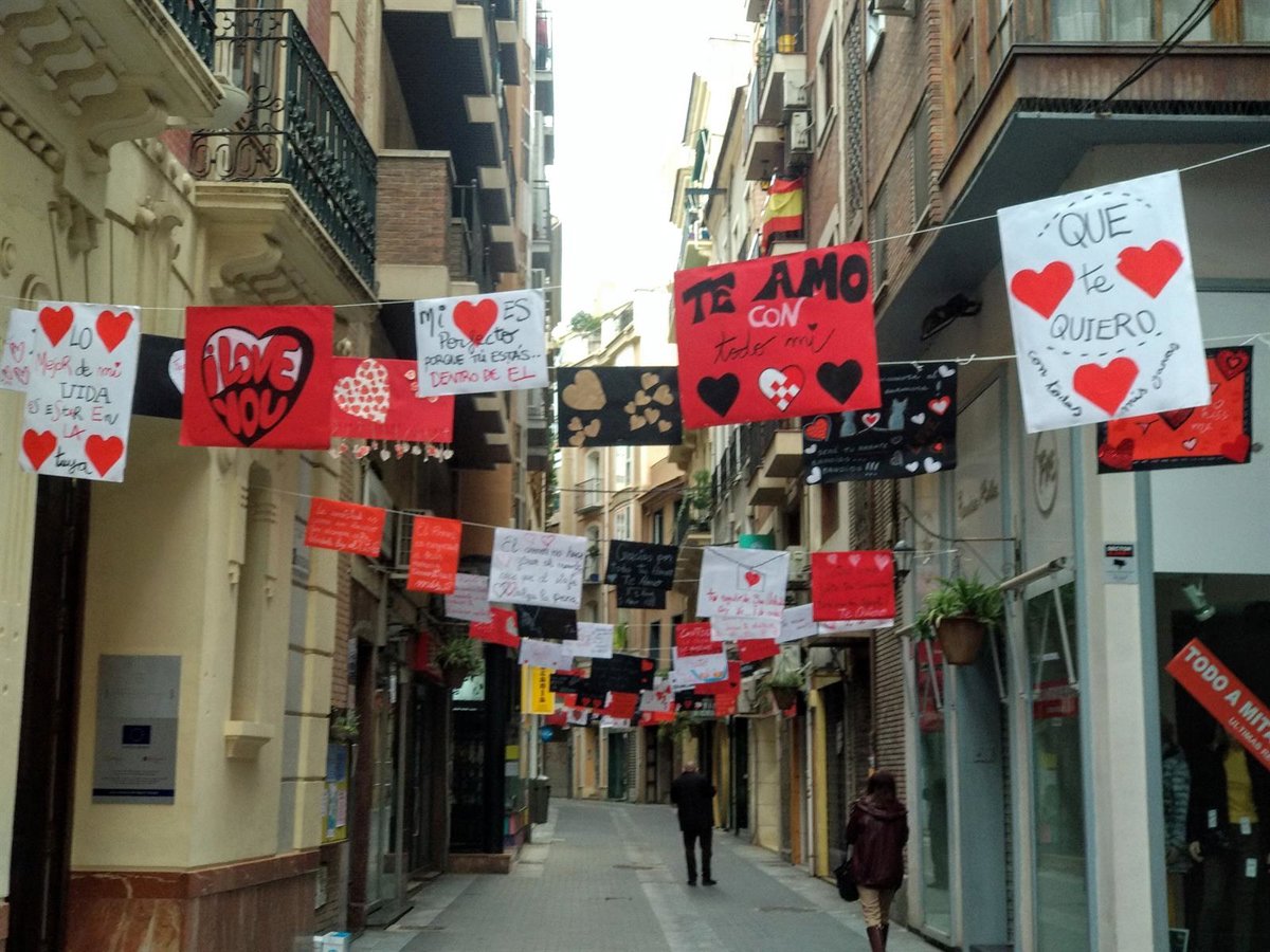 De este modo, los comerciantes han colgado "cerca de unos 100 mensajes románticos" a lo largo de toda la calle como ha señalado la propietaria de Calzados La Fábrica, Ana Vidal, en declaraciones a Europa Press.