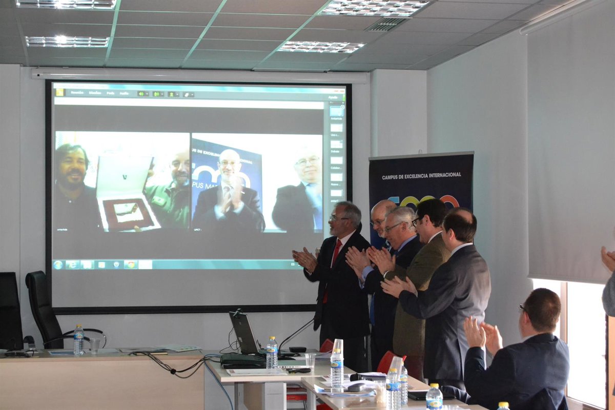 La entrega ha sido seguida a través de video-conferencia por los rectores de la Universidad de Murcia y de la Politécnica de Cartagena, José Antonio Cobacho y José Antonio Franco, respectivamente, que se encontraban en el Parque Tecnológico de Fuente Álamo celebrando la reunión del consejo de dirección del Campus de Excelencia Mare Nostrum.
