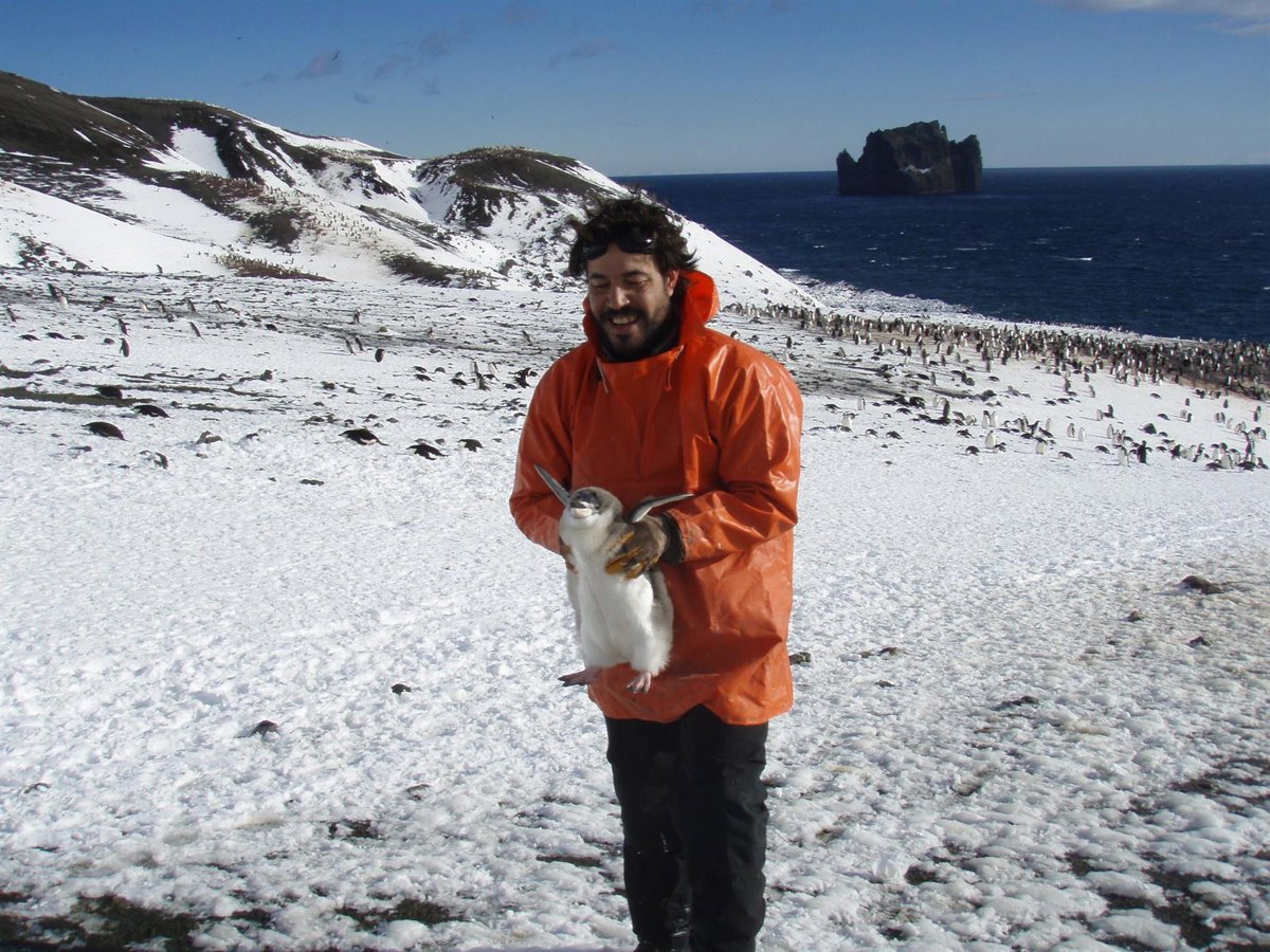 Miguel Motas participa en el proyecto de Investigación 'Pinguclim', que estudia el cambio climático y su influencia en diversos aspectos de los pingüinos, utilizando estos para medir dicho cambio y analiza parámetros referidos a parásitos, inmunidad, alimento, contaminación.