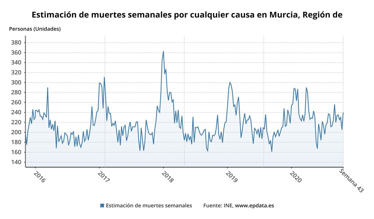 Evolución de la estimación de muertes semanales por cualquier causa en la Región - EUROPA PRESS