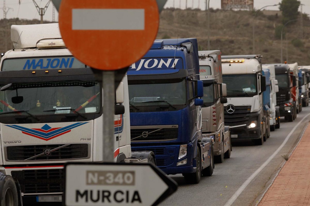 Cerca de medio centenar de camiones y remolques de distinto tonelaje han vuelto a protagonizar, por cuarto día consecutivo, atascos y retenciones de tráfico en las principales autovías de la Región de Murcia.